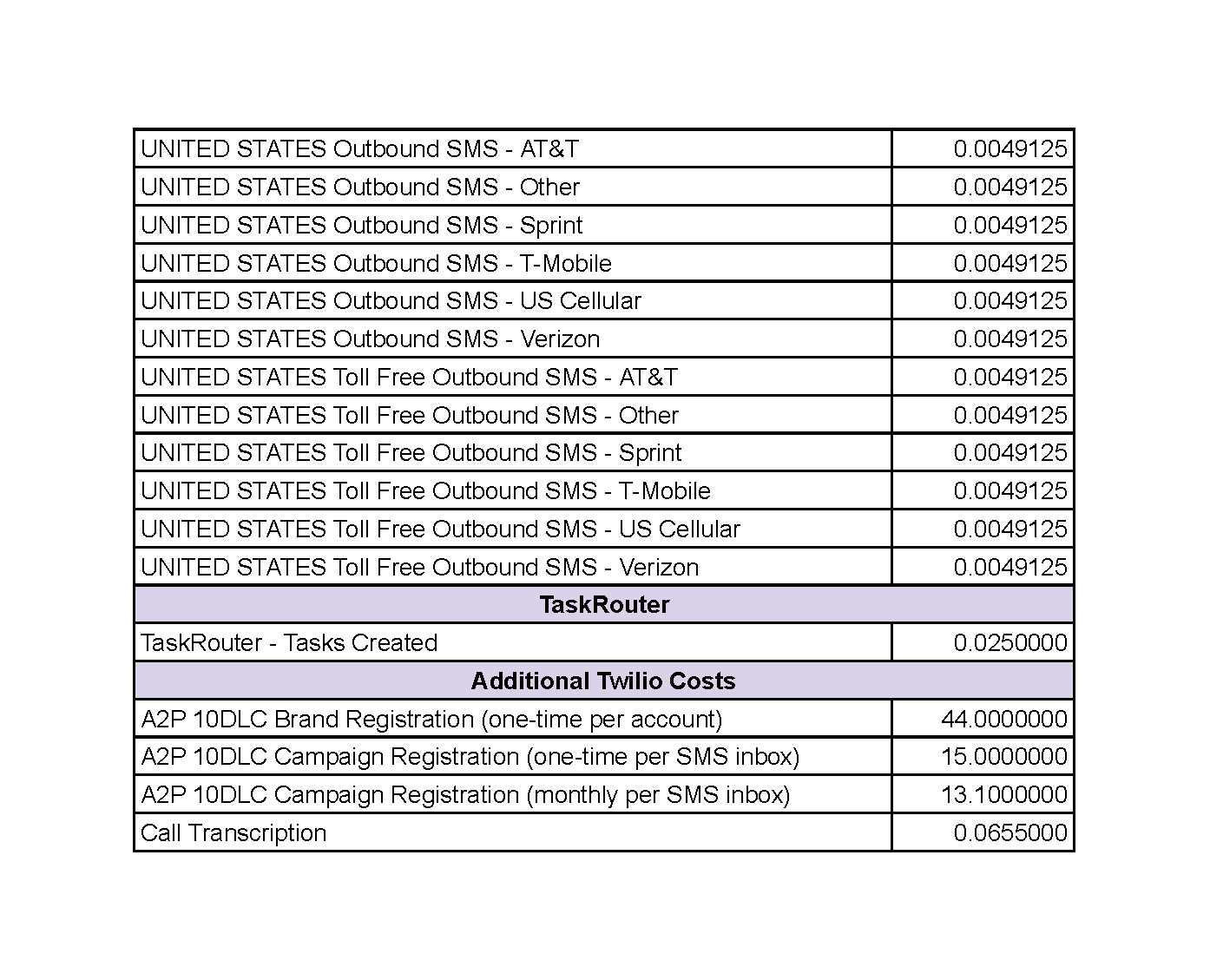 TNS Rates