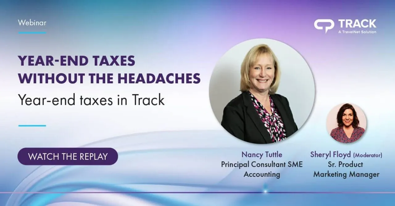 In this webinar, Principal Consultant SME in Accounting Nancy Tuttle, and Sr. Product Marketing Manager Sheryl Floyd hosted a training session for Track users preparing for 2023 Year-End Taxes.
